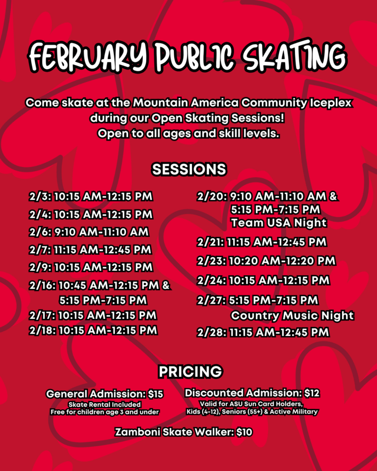 Join us at the Mountain America Community Iceplex for Public Open Skating! Whether you’re a beginner on the ice or advanced, young or old, solo or families, Public Skating is perfect for everyone.